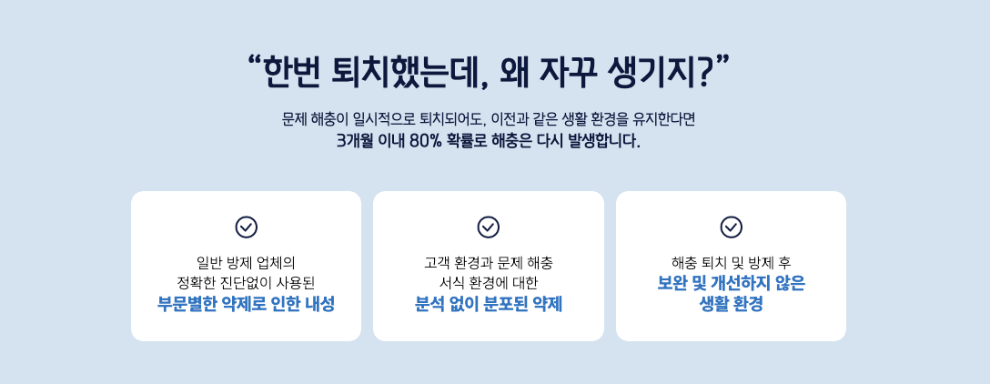 3. 처리: 인체에 무해한 친환경 물질을 사용하여 해충을 효과적으로 제거합니다.