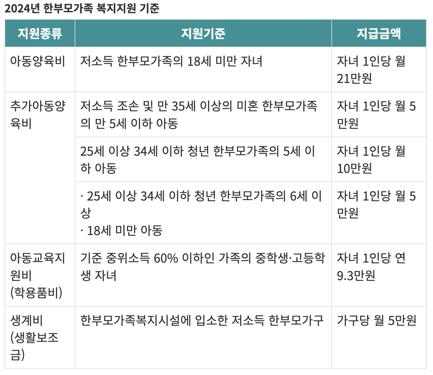 한부모가정 지원금
