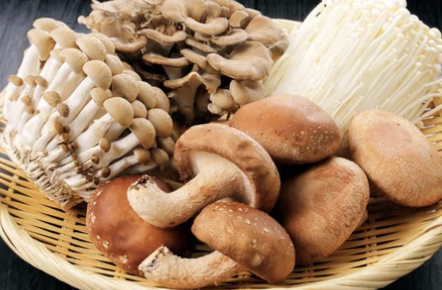 표고버섯, 새송이버섯, 양송이버섯 등 버섯에는 베타글루칸과 에리타데닌 성분이 풍부하여 콜레스테롤 흡수를 억제하고 혈압을 낮추는 효과가 있습니다.