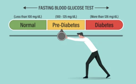 - 당뇨병 전 단계 (또는 공복혈당 장애): 100~125 mg/dL