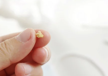 - 면봉에 물을 묻혀 결석을 부드럽게 밀어냅니다.