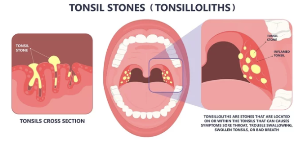 구강 위생이 좋지 않으면 세균과 찌꺼기가 편도에서 엉겨 결석을 형성합니다.