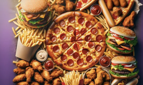 가공식품 | 소시지, 햄, 라면 등 나트륨과 지방 함량이 높은 음식. |