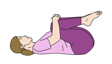 - 양손으로 한쪽 무릎을 가슴 쪽으로 천천히 당긴다.
