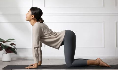 ✔ 고양이-소 스트레칭 – 척추 유연성 향상