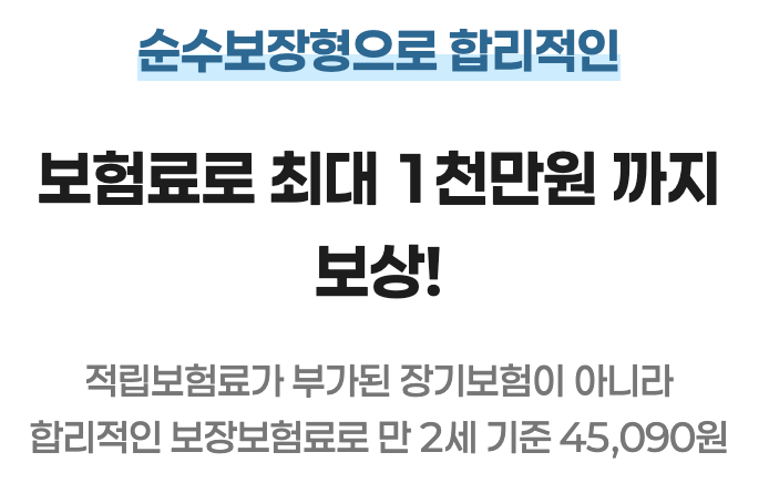 이 보험은 특히 장기적으로 보장받을 수 있는 설계가 가능하다는 점이 특징입니다. 갱신을 통해 최대 만 20세까지 보장이 가능하며, 일정한 보험료를 유지하면서 장기간 안정적인 보장을 원하는 보호자에게 적합한 선택지입니다.