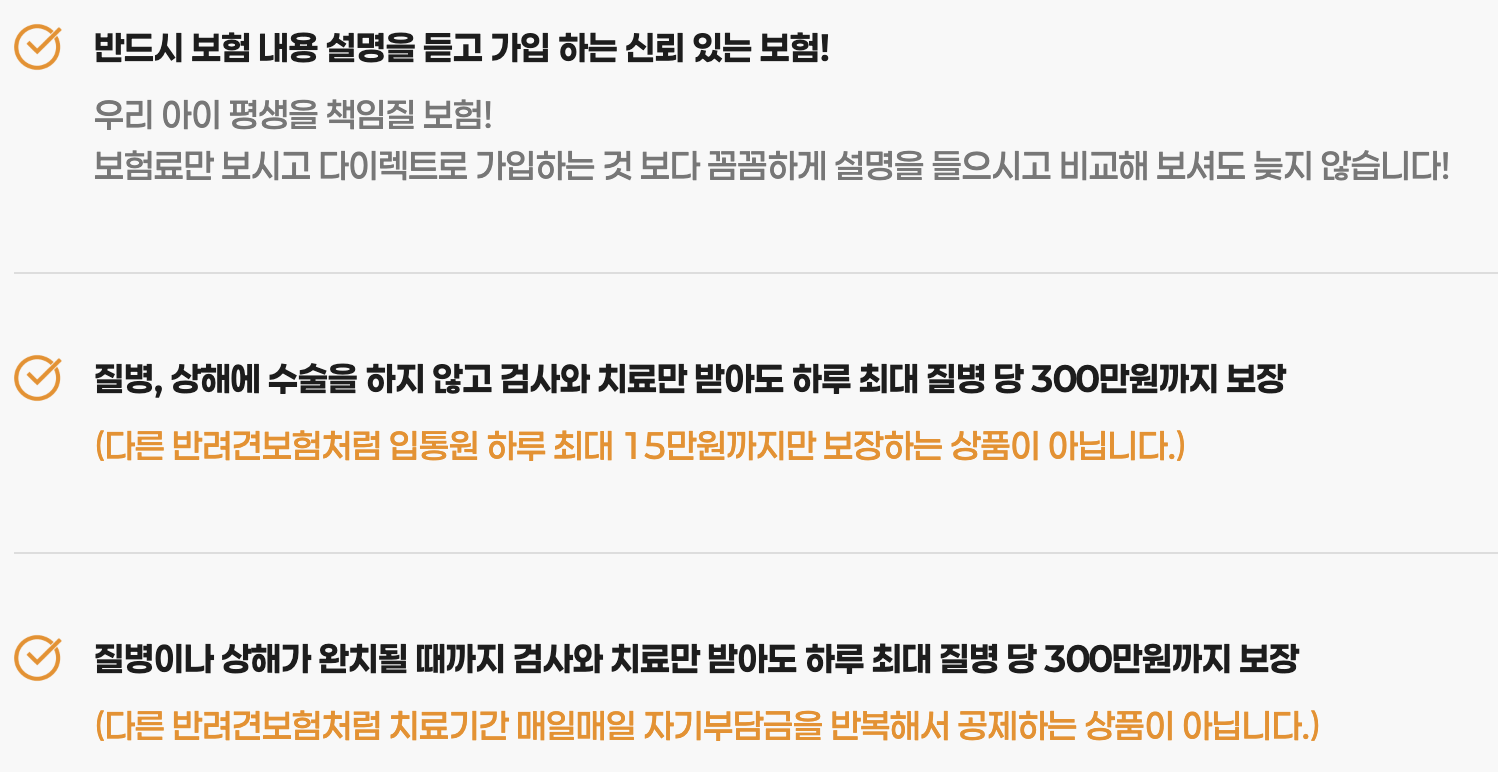 - 반려동물 사망 시 위로금 (특약 선택 시)